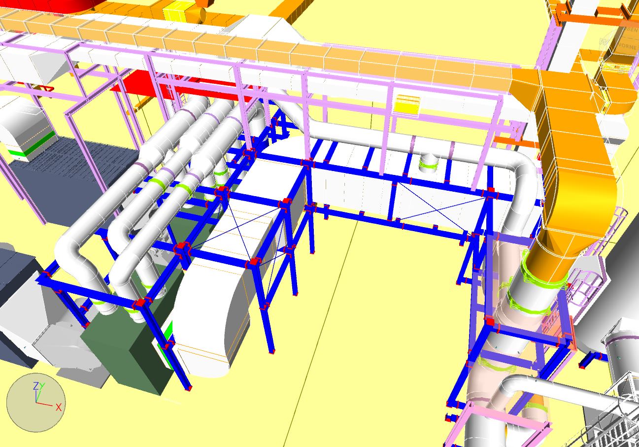 Beispiel Prozesslüftung (3D Detailplanung der Kanaele, Erstellung von Stücklisten, Montageplänen etc.)